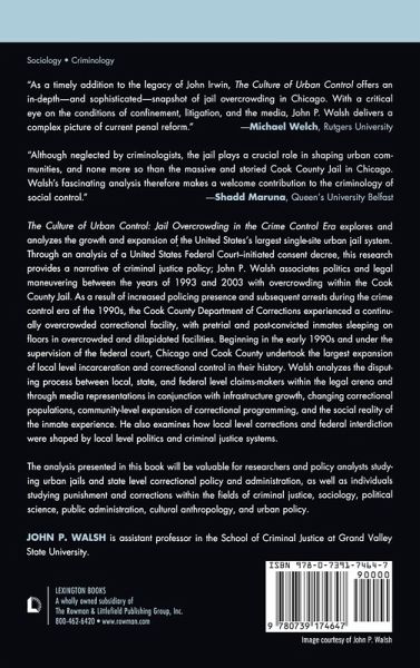 Through an analysis of a federal consent decree and media representation related to overcrowding within the largest single-site jail facility in the United States, the incarceration binge of the 1990’s is explored at the local level in The Culture of Urban Control: Jail Overcrowding in the Crime Control Era. Analysis of jail conditions, expansion, the inmate experience and changing correctional populations provide a narrative of the culture of control within the Cook County Department of Corrections in Chicago, Illinois.