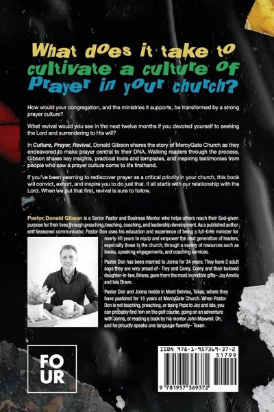 What does it take to cultivate a culture of prayer in your church?How would your congregation, and the ministries it supports, be transformed by a strong prayer culture? What revival would you see in the next twelve months if you devoted yourself to seeking the Lord and surrendering to His will? In Culture, Prayer, Revival, Donald Gibson shares the story of MercyGate Church as they endeavored to make prayer central to their DNA. Walking readers through the process, Gibson shares key insights, practical tools and templates, and inspiring testimonies from people who saw a prayer culture come to life firsthand. If you've been yearning to rediscover prayer as a critical priority in your church, this book will convict, exhort, and inspire you to do just that. It all starts with our relationship with the Lord. When we put that first, revival is sure to follow.