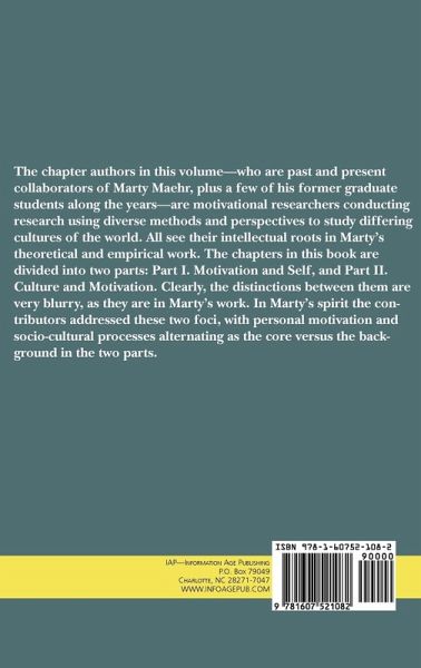 The authors of the chapters in this volume-past and present collaborators of Marty Maehr, and a few of his former graduate students along the years-are motivational researchers who conduct research using diverse methods and perspectives, and in different parts of the world. All, however, see their intellectual roots in Marty's theoretical and empirical work. The chapters in this book are divided into two sections: Motivation and Self and Culture and Motivation. Clearly, the distinctions between these two sections are very blurry, as they are in Marty's work. And yet, when the authors were asked to contribute their chapters, the research questions they addressed seemed to have formed two foci, with personal motivation and socio-cultural processes alternating as the core versus the background in the two sections.