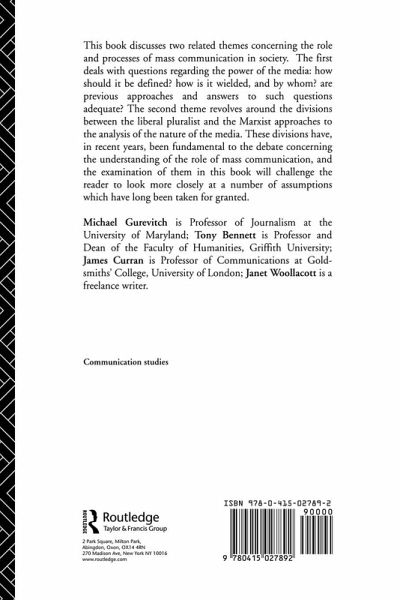 This book discusses two related themes concerning the role and processes of mass communication in society. The first deals with questions regarding the power of the media: how should it be defined? how is it wielded and by whom? are previous approaches and answers to such questions adequate? The second theme revolves around the divisions between the liberal pluralist and Marxist approaches to the analysis of the nature of the media. These divisions have, in recent years, been fundamental to the debate concerning the understanding of the role of mass communication, and the examination of them in this book will challenge the reader to look more closely at a number of assumptions that have long been taken for granted.