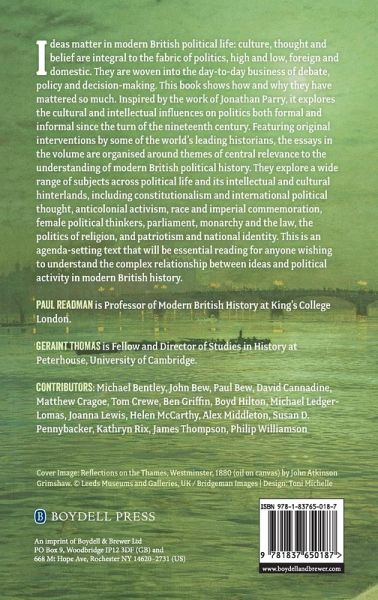 Brings together agenda-setting essays that illuminate the complex relationship between ideas and political activity in modern British history. Ideas matter in modern British political life: culture, thought and belief are integral to the fabric of politics, high and low, foreign and domestic. They are woven into the day-to-day business of debate, policy and decision-making. This book shows how and why they have mattered so much. Inspired by the work of Jonathan Parry, it explores the cultural and intellectual influences on politics both formal and informal since the turn of the nineteenth century. Featuring original interventions by some of the world's leading historians, the essays in the volume are organised around themes of central relevance to the understanding of modern British political history. They explore a wide range of subjects across political life and its intellectual and cultural hinterlands, including constitutionalism and international political thought, anticolonial activism, race and imperial commemoration, female political thinkers, parliament, monarchy and the law, the politics of religion, and patriotism and national identity. This is an agenda-setting text that will be essential reading for anyone wishing to understand the complex relationship between ideas and political activity in modern British history. Paul Readman is Professor of Modern British History at King's College London. Dr Geraint Thomas is Fellow and Director of Studies in History at Peterhouse, University of Cambridge. Contributors: Michael Bentley, John Bew, Paul Bew, David Cannadine, Matthew Cragoe, Tom Crewe, Ben Griffin, Boyd Hilton, Michael Ledger-Lomas, Joanna Lewis, Helen McCarthy, Alex Middleton, Susan D. Pennybacker, Kathryn Rix, James Thompson, Philip Williamson