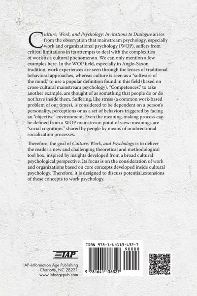 This book critiques mainstream work and organizational psychology (WOP) for its limitations in addressing work as a cultural phenomenon. It offers a new theoretical and methodological toolbox from a cultural psychological perspective, aiming to extend core concepts to work psychology.