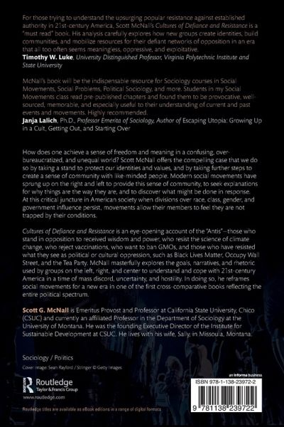 How does one achieve a sense of freedom and meaning in a confusing, over-bureaucratized, and unequal world? Scott McNall offers the compelling case that we do so by taking a stand to protect our identities and values, and by taking further steps to create a sense of community with like-minded people. Modern social movements have sprung up on the right and left, to provide this sense of community, to seek explanations for why things are the way they are, and to discover what might be done in response. At this critical juncture in American society when divisions over race, class, gender, and government influence persist, movements allow their members to feel they are not trapped by their conditions. Cultures of Defiance and Resistance is an eye-opening account of the 'Antis' - those who stand in opposition to received wisdom and power, who resist the science of climate change, who reject vaccinations, who want to ban GMOs, and those who have resisted what they see as political or cultural oppression, such as Black Lives Matter, Occupy Wall Street, and the Tea Party. McNall masterfully explores the goals, narratives, and rhetoric used by groups on the left, right, and center to understand and cope with 21st century America in a time of mass discord, uncertainty, and hostility. In doing so, he reframes social movements for a new era in one of the first cross-comparative books reflecting the entire political spectrum.