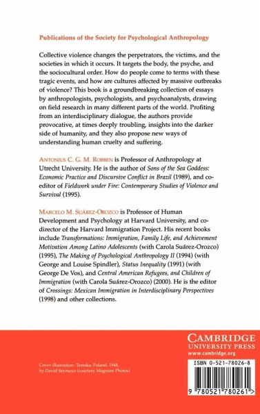 Introduction; 1. Interdisciplinary perspectives on violence and trauma Marcelo M. Suarez-Orozco and Antonius C. G. M. Robben; Part I. The Management of Collective Trauma: 2. Reflections on the prevalence of the uncanny in social violence Yolanda Gampel; 3. The assault on basic trust: disappearance, protest, and reburial in Argentina Antonius C. G. M. Robben; 4. Mitigating discontents with children in war: an ongoing psychoanalytic inquiry Roberta J. Apfel and Bennett Simon; 5. Child psychotherapy as an instrument in cultural research: treating war-traumatized children in former-Yugoslavia David de Levita; Part II. Cultural Responses to Collective Trauma: 6. The traumatized social self: the Parsi predicament in modern Bombay Tanya M. Luhrmann; 7. Identities under siege: immigration stress and social mirroring among the children of immigrants Carola Suarez-Orozco; 8. Modern Greek and Turkish identities and the psychodynamics of Greek-Turkish relations Vamik D. Volkan and Norman Itzkowitz; 9. The violence of non-recognition: becoming a 'conscious' Muslim woman in Turkey Katherine P. Ewing; Epilogue Robert A. LeVine.