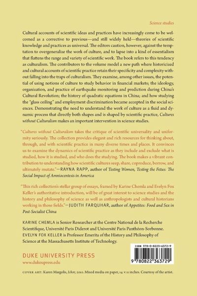 Cultural accounts of scientific ideas and practices have increasingly come to be welcomed as a corrective to previous-and still widely held-theories of scientific knowledge and practices as universal. The editors caution, however, against the temptation to overgeneralize the work of culture, and to lapse into a kind of essentialism that flattens the range and variety of scientific work. The book refers to this tendency as culturalism. The contributors to the volume model a new path where historicized and cultural accounts of scientific practice retain their specificity and complexity without falling into the traps of culturalism. They examine, among other issues, the potential of using notions of culture to study behavior in financial markets; the ideology, organization, and practice of earthquake monitoring and prediction during China's Cultural Revolution; the history of quadratic equations in China; and how studying the "glass ceiling" and employment discrimination became accepted in the social sciences. Demonstrating the need to understand the work of culture as a fluid and dynamic process that directly both shapes and is shaped by scientific practice, Cultures without Culturalism makes an important intervention in science studies. Contributors. Bruno Belhoste, Karine Chemla, Caroline Ehrhardt, Fa-ti Fan,Kenji Ito, Evelyn Fox Keller, Guillaume Lachenal, Donald MacKenzie, Mary S. Morgan, Nancy J. Nersessian, David Rabouin, Hans-Jörg Rheinberger, Claude Rosental, Koen Vermeir
