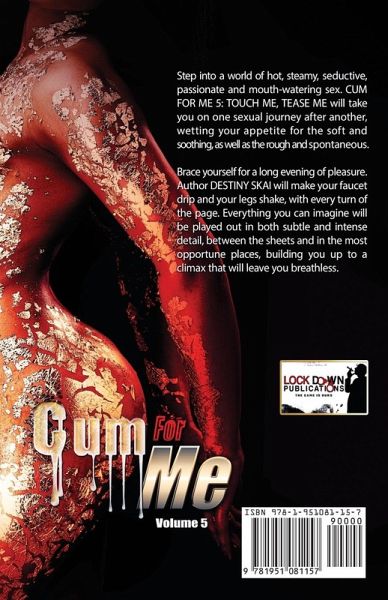 Step into a world of hot, steamy, seductive, passionate and mouth-watering sex. CUM FOR ME 5: TOUCH ME, TEASE ME will take you on one sexual journey after another, wetting your appetite for the soft and soothing, as well as the rough and spontaneous. Brace yourself for a long evening of pleasure. Author DESTINY SKAI will make your faucet drip and your legs shake, with every turn of the page. Everything you can imagine will be played out in both subtle and intense detail, between the sheets and in the most opportune places, building you up to a climax that will leave you breathless.