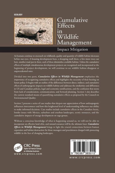 Divided into two parts, Cumulative Effects in Wildlife Management emphasizes the importance of recognizing cumulative effects and highlights the necessity of their bearing on future policy. It begins with an outline of the differences between direct, indirect, and cumulative effects of anthropogenic impacts on wildlife habitat and addresses the similarities and differences in US and Canadian policies, legal and economic ramifications, and the confusion that stems from lack of consideration, communication, and forward planning. Section 1 also describes the current standard means of quantifying cumulative effects as proposed by the Council on Environmental Quality.
