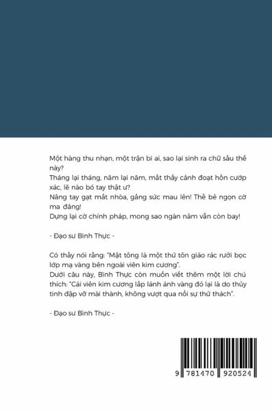 Vietnamese Edition. Phàm nh¿ng ng¿¿i tu h¿c Ph¿t pháp, t¿t c¿ ¿¿u d¿a vào khai th¿ c¿a ¿¿c Ph¿t, t¿p k¿t thành kinh ¿i¿n ¿¿ hi¿n th¿ Ph¿t ch¿, tuân theo tu hành không ng¿ng ngh¿ ¿¿ ch¿ng Pháp ¿¿o. Phàm các Ph¿t t¿ thân ch¿ng Ph¿t ¿¿o, không ai là không d¿a vào s¿c m¿nh gia trì c¿a Ph¿t, sau ¿ó m¿i ¿¿¿c "nh¿t ni¿m t¿¿ng ¿ng", thân ch¿ng Bát Nhã. N¿u ai ¿ó mün tu hành Ph¿t pháp, mün ch¿ng Ph¿t ¿¿o, mà không n¿¿ng d¿a vào Th¿ Tôn, mà l¿i mün ch¿ng Ph¿t B¿ ¿¿ thì ¿úng là k¿ ngu si. Th¿ nh¿ng, Ki¿n, Tu, Hành, Qü c¿a M¿t giáo l¿i ¿¿u d¿a vào song thân Ph¿t do các t¿ s¿ c¿a M¿t giáo t¿ bày ¿¿t ra - coi song thân "Ph¿t" mãi ôm ng¿¿i n¿ ¿¿ th¿ h¿¿ng dâm l¿c là Báo thân Ph¿t (Báo thân Ph¿t nh¿ th¿ th¿c t¿ không ph¿i là Báo thân Ph¿t th¿c s¿, ¿¿u là s¿ th¿ hi¿n gi¿ t¿o c¿a qü th¿n d¿ xoa), l¿i c¿u Ph¿t ¿¿o b¿ng pháp dâm h¿p song thân c¿a phái Tính L¿c l¿y t¿ ngöi ¿¿o, coi ¿ó là chính tu trong Ph¿t pháp, không h¿ n¿¿ng d¿a vào Thích Ca Th¿ Tôn sáng l¿p ra Ph¿t giáo, mà l¿i d¿a vào th¿¿ng s¿ Liên Hoa Sinh phàm phu t¿c t¿, tôn làm giáo ch¿ M¿t giáo, r¿i chia ¿ình gánh l¿ v¿i Hi¿n giáo, không d¿a vào Ph¿t, th¿t ¿úng là ¿iên ¿¿o g¿c ng¿n. Liên Hoa Sinh v¿n d¿ là phàm phu ngöi ¿¿o, sinh ra t¿ nh¿c thai, c¿ng l¿y v¿ sinh con, ch¿ không ph¿i là do hoa sen hóa sinh th¿c s¿. Các th¿¿ng s¿ M¿t giáo vì mün sáng l¿p ra giáo ch¿ M¿t giáo, cho nên ¿ã tiêm nhi¿m ph¿ h¿a ¿¿ l¿u truy¿n truy¿n thuy¿t này, thêm vào ¿ó l¿i ¿¿¿c ng¿¿i ¿¿i sau mù quáng truy¿n sai ti¿p, cüi cùng tr¿ thành hoa sen hóa sinh ¿¿¿c M¿t giáo công nh¿n, cho nên ¿¿t tên là Liên Hoa Sinh. Ông Liên Hoa Sinh ¿ó v¿n ch¿ là phàm phu, pháp mà ông ta höng truy¿n l¿i toàn là tà ¿¿o dâm l¿c ¿ th¿ gian c¿a phái Tính L¿c ngöi ¿¿o, ch¿ là Vô minh D¿c gi¿i ái mà Th¿ Tôn liên t¿c bác b¿ trong các kinh ¿i¿n, nói ¿ó là th¿ mà t¿t th¿y Ph¿t t¿ Tam th¿a ¿¿u ph¿i ¿ön tr¿, th¿ mà Liên Hoa Sinh l¿i d¿y ng¿¿i tham lam và ch¿p bám vào th¿ l¿c xúc l¿n nh¿t trong dâm d¿c, hoàn toàn làm ng¿¿c v¿i l¿i Ph¿t d¿y, thì sao có th¿ g¿i là "giáo ch¿ M¿t giáo trong Ph¿t giáo" ¿¿¿c? Cho nên, nh¿ng ng¿¿i h¿c Ph¿t c¿n ph¿i n¿¿ng d¿a vào Ph¿t Thích Ca Mâu Ni, không nên d¿a vào th¿¿ng s¿ Liên Hoa Sinh c¿a ngöi ¿¿o phàm phu. L¿i n¿a, n¿u ¿ã bi¿t c¿n ph¿i d¿a vào Ph¿t mà không d¿a vào phàm phu ngöi ¿¿o r¿i, thì c¿ng ph¿i bi¿t ¿¿n chính lý n¿¿ng d¿a vào chính pháp ch¿ không nên n¿¿ng d¿a vào ng¿¿i (y pháp b¿t y nhân). Pháp mà Ph¿t nói, không ngoài ¿¿o Gi¿i Thoát và ¿¿o Ph¿t B¿ ¿¿. Hai pháp này, nói v¿n t¿t thì ¿¿u n¿m trong ¿¿o Ph¿t B¿ ¿¿.