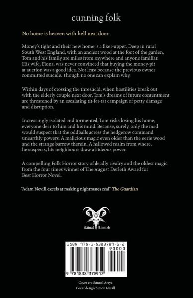 A compelling folk horror story of deadly rivalry and the oldest magic from the four times winner of The August Derleth Award for Best Horror Novel. No home is heaven with hell next door. Money's tight and their new home is a fixer-upper. Deep in rural South West England, with an ancient wood at the foot of the garden, Tom and his family are miles from anywhere and anyone familiar. His wife, Fiona, was never convinced that buying the money-pit at auction was a good idea. Not least because the previous owner committed suicide. Though no one can explain why. Within days of crossing the threshold, when hostilities break out with the elderly couple next door, Tom's dreams of future contentment are threatened by an escalating tit-for-tat campaign of petty damage and disruption. Increasingly isolated and tormented, Tom risks losing his home, everyone dear to him and his mind. Because, surely, only the mad would suspect that the oddballs across the hedgerow command unearthly powers. A malicious magic even older than the eerie wood and the strange barrow therein. A hallowed realm from where, he suspects, his neighbours draw a hideous power. "Nevill has crafted some of the tensest scariest horror this reviewer has read in years" SFX "Adam Nevill excels at making nightmares real" Guardian