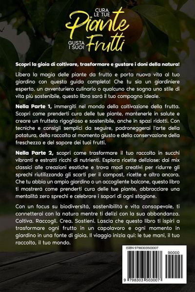 VERSIONE A COLORI! Ti sei mai sentito frustrato nel vedere i tuoi raccolti andare sprecati? Hai mai desiderato trasformare i tuoi frutti in delizie naturali ma non sai da dove iniziare? Oppure ti chiedi come prenderti cura delle tue piante per ottenere raccolti abbondanti e sani? Con il bundle definitivo "Cura le Tue Piante, Gusta i suoi Frutti", scoprirai tutto quello che ti serve per valorizzare ogni fase del tuo lavoro: dalla potatura al raccolto, fino alla creazione di succhi e bevande sane e gustose. Ecco cosa troverai: * Consigli dettagliati sulla potatura per mantenere le tue piante produttive e in salute. * Tecniche facili da seguire per migliorare il raccolto e ottenere frutti al massimo del loro sapore. * Ricette esclusive e semplici per creare succhi, smoothie e tisane naturali direttamente a casa tua. * Idee per drink creativi e salutari, perfetti per sorprendere amici e famiglia. * Metodi di conservazione naturale per mantenere freschi i tuoi frutti più a lungo. * Strumenti essenziali per la preparazione e lavorazione della frutta. * Strategie anti-spreco per utilizzare ogni parte del raccolto in modo creativo. * Focus sui benefici per la salute dei tuoi frutti preferiti, con indicazioni su vitamine e nutrienti. * Tecniche di fermentazione e marmellate per chi vuole sperimentare. * Guida passo passo per trasformare la passione per la natura in uno stile di vita sano e consapevole. Questo libro è un bundle completo, progettato per essere la tua guida definitiva: che tu sia un appassionato di giardinaggio o un principiante, troverai tutto il necessario per goderti il meglio dai tuoi raccolti. Non aspettare oltre!