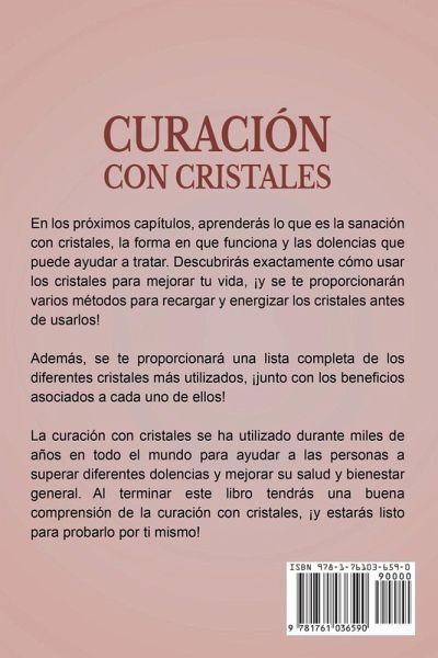 Curación con Cristales ¿En los próximos capítulos, aprenderás lo que es la sanación con cristales, la forma en que funciona y las dolencias que puede ayudar a tratar. Descubrirás exactamente cómo usar los cristales para mejorar tu vida, ¡y se te proporcionarán varios métodos para recargar y energizar los cristales antes de usarlos! Además, se te proporcionará una lista completa de los diferentes cristales más utilizados, ¡junto con los beneficios asociados a cada uno de ellos! La curación con cristales se ha utilizado durante miles de años en todo el mundo para ayudar a las personas a superar diferentes dolencias y mejorar su salud y bienestar general. Al terminar este libro tendrás una buena comprensión de la curación con cristales, ¡y estarás listo para probarlo por ti mismo!
