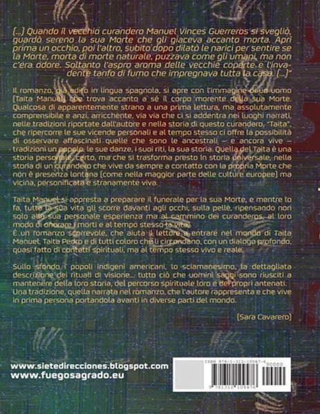 "(...) Quando il vecchio curandero Manuel Vices Guerreros si svegliò, guardò sereno la sua Morte che gli giaceva accanto morta. Aprì prima un occhio, poi l'altro, subito dopo dilatò le narici per sentire se la Morte, morta di morte naturale, puzzava come gli umani, ma non c'era odore. Soltanto l'aspro aroma delle vecchie coperte e l'invadente tanfo di fumo che impregnava tutta la casa. (...)" Il romanzo, già edito in lingua spagnola, si apre con l'immagine di un uomo (Taita Manuel) che trova accanto a sé il corpo morente della sua Morte. Qualcosa di apparentemente strano a una prima lettura, ma assolutamente comprensibile e anzi, arricchente, via via che ci si addentra nei luoghi narrati, nelle tradizioni riportate dall'autore e nella storia di questo curandero, "Taita", che ripercorre le sue vicende personali e al tempo stesso ci offre la possibilità di osservare affascinati quelle che sono le ancestrali - e ancora vive - tradizioni un popolo: le sue danze, i suoi riti, la sua storia.