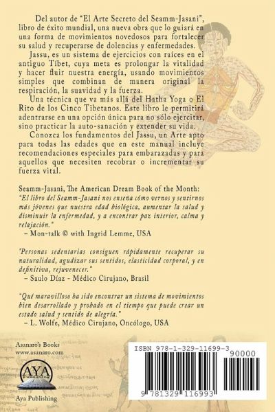 Del autor de "El Arte Secreto del Seamm-Jasani", libro de éxito mundial, una nueva obra que lo guiará en una forma de movimientos novedosos para fortalecer su salud y recuperarse de dolencias y enfermedades. Jassu, es un sistema de ejercicios con raíces en el antiguo Tíbet, cuya meta es prolongar la vitalidad y hacer fluir nuestra energía, usando movimientos simples que combinan de manera original la respiración, la suavidad y la fuerza. Una técnica que va más allá del Hatha Yoga o El Rito de los Cinco Tibetanos. Este libro le permitirá adentrarse en una opción única para no sólo ejercitar, sino practicar la auto-sanación y extender su vida. Este manual incluye recomendaciones especiales para embarazadas y para aquellos que necesiten recobrar o incrementar su fuerza vital.