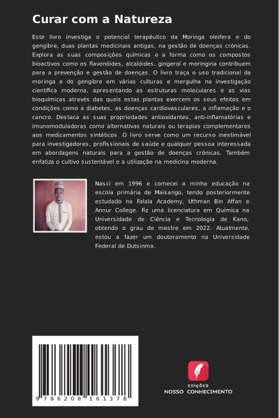 Este livro investiga o potencial terapêutico da Moringa oleifera e do gengibre, duas plantas medicinais antigas, na gestão de doenças crónicas. Explora as suas composições químicas e a forma como os compostos bioactivos como os flavonóides, alcalóides, gingerol e moringina contribuem para a prevenção e gestão de doenças. O livro traça o uso tradicional da moringa e do gengibre em várias culturas e mergulha na investigação científica moderna, apresentando as estruturas moleculares e as vias bioquímicas através das quais estas plantas exercem os seus efeitos em condições como a diabetes, as doenças cardiovasculares, a inflamação e o cancro. Destaca as suas propriedades antioxidantes, anti-inflamatórias e imunomoduladoras como alternativas naturais ou terapias complementares aos medicamentos sintéticos. O livro serve como um recurso inestimável para investigadores, profissionais de saúde e qualquer pessoa interessada em abordagens naturais para a gestão de doenças crónicas. Também enfatiza o cultivo sustentável e a utilização na medicina moderna.