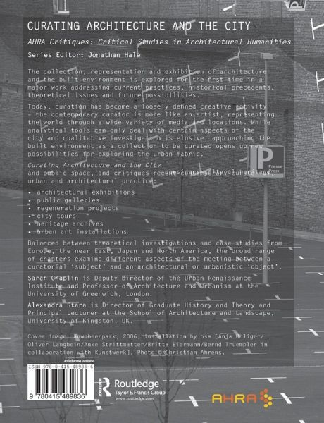 Introduction Part 1: City Tours and Urban Reveries 1. Remembering Dublin in Ulysses 2. Choose (What) to Learn from Las Vegas, LA, London, Rome, Lagos...? 3. Curated Desires: Film, Photography and the Visual Transformation of Urban Space in Surrealism 4. Moving City: Curating Architecture on Site 5. Awaiting the Voice-Over: The Oresund Film Commission Location Database and the Mediatization of Architectural Landscape 6. Curating Contemporary Architecture: Touring the Bilbao Guggenheim and Seattle Central Library Part 2: Rethinking Curatorship, Rethinking Architecture 7. Cura 8. Caring for Dead Architecture 9. Exhibiting Architecture: The Installation as Laboratory for Emerging Architecture 10. From Flash Art to Flash Mob: Art in the Age of Spectacularisation 11. Reading into the Mysteries of Artemis Ephesia Part 3: Re-interpreting Public Space and Cultural Heritage 12. Curating the Social, Curating the Architectural 13. Expanding the Public Realm Through Curated Collaborative Action: The Echigo Tsumari Abandoned House Project 14. Curating the Nation: Turkish Pavilions in World Expositions 15. After Branding - A Lively Downtown? 16. The Necessity of Distance: Setting the Position for Critical Spatial Practice 17. Urban Fictions with the Office for Subversive Architecture. Afterword
