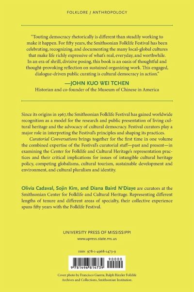 Since its origins in 1967, the Smithsonian Folklife Festival has gained worldwide recognition as a model for the research and public presentation of living cultural heritage and the advocacy of cultural democracy. Festival curators play a major role in interpreting the Festival's principles and shaping its practices. Curatorial Conversations brings together for the first time in one volume the combined expertise of the Festival's curatorial staff--past and present--in examining the Center for Folklife and Cultural Heritage's representation practices and their critical implications for issues of intangible cultural heritage policy, competing globalisms, cultural tourism, sustainable development and environment, and cultural pluralism and identity. In the volume, edited by the staff curators Olivia Cadaval, Sojin Kim, and Diana Baird N'Diaye, contributors examine how Festival principles, philosophical underpinnings, and claims have evolved, and address broader debates on cultural representation from their own experience. This book represents the first concerted project by Smithsonian staff curators to examine systematically the Festival's institutional values as they have evolved over time and to address broader debates on cultural representation based on their own experiences at the Festival.