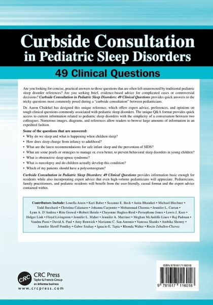 Curbside Consultation in Pediatric Sleep Disorders: 49 Clinical Questions provides quick answers to the tricky questions most commonly posed during a "curbside consultation" between pediatricians.