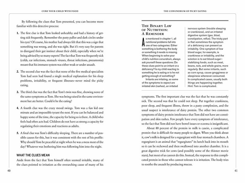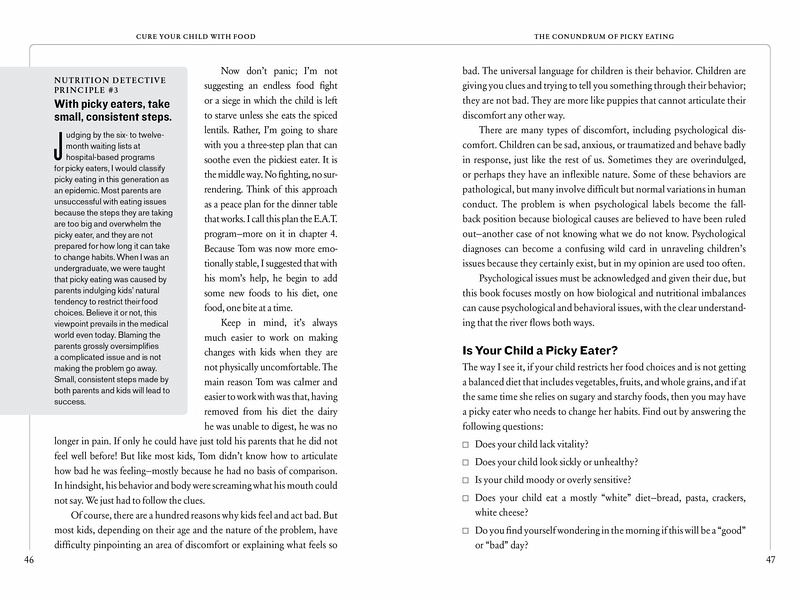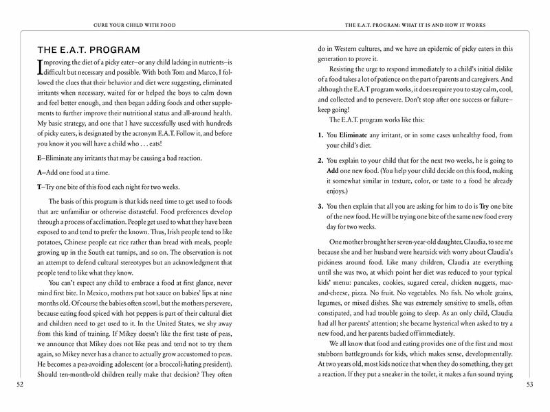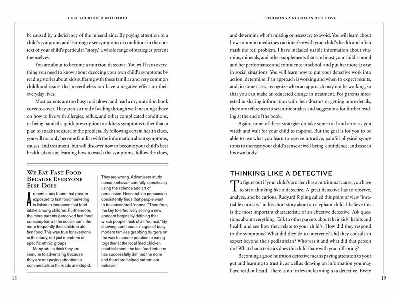 Grounded in cutting-edge science, Cure Your Child with Food reveals the hidden connections between nutrition and chronic childhood ailments, and gives parents the simple, straightforward solutions they need to help their children thrive. Discover how zinc deficiency can cause picky eating and affect growth. The panoply of problems caused by dairy and gluten. How to cure sleep disorders with melatonin, hyperactivity with magnesium, anxiety with fish oil. Kelly Dorfman, a nutritionist whose typical patient arrives at her practice after seeing three or more specialists, gives parents the tools to become nutrition detectives themselves. She shows how to recalibrate children's diets through the easy E.A.T. program, and how to get kids off drugs—antibiotics, laxatives, Prozac, Ritalin—and back to a state of natural well-being. "In her terrific book, Kelly Dorfman clearly explains how to decipher the clues to nutritional disorders that affect the body and brain. Parents will find it packed with sound advice and useful information." —Maurine Packard, MD, pediatric neurologist A Nautilus Book Award Gold winner.
