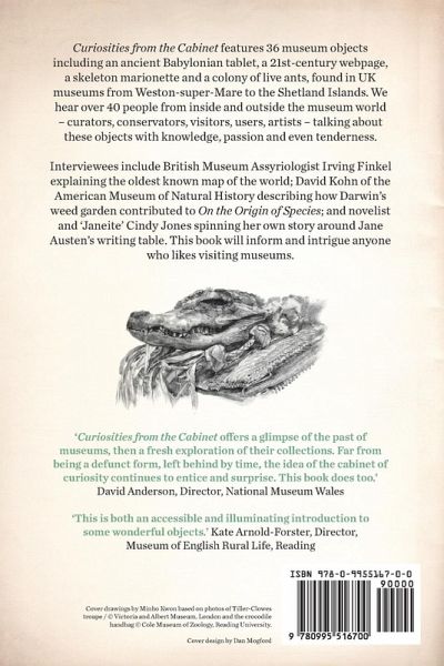Curiosities from the Cabinet features 36 museum objects including an ancient Babylonian tablet, a 21st-century webpage, a skeleton marionette and a colony of live ants, found in UK museums from Weston-super-Mare to the Shetland Islands. Over 40 people from inside and outside the museum world - curators, conservators, visitors, users, artists - talk about these objects with knowledge, passion and even tenderness. We listen as British Museum Assyriologist Irving Finkel explains the oldest known map of the world; David Kohn of the American Museum of Natural History describes how Darwin's weed garden contributed to On the Origin of Species; and novelist and 'Janeite' Cindy Jones spins her own story around Jane Austen's writing table. This book will inform and intrigue anyone who likes visiting museums.