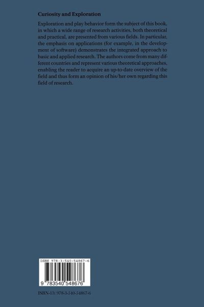 I: Introduction.- I.0 Preface: The Study of Exploration.- I.1 Fairy Tales and Curiosity. Exploratory Behavior in Literature for Children or the Futile Attempt to Keep Girls from the Spindle.- II: Function and Motivational Mechanics of Exploration.- II.2 An Ethological Conception of Exploratory Behavior.- II.3 The Neurobiological Foundation of Exploration.- II.4 Two Characteristics of Surprise: Action Delay and Attentional Focus.- II.5 Interest and Curiosity. The Role of Interest in a Theory of Exploratory Action.- II.6 Interest and Exploration: Exploratory Action in the Context of Interest Genesis.- III: Development and Interindividual Differences.- III.7 The Relationship Between Attachment, Temperament, and Exploration.- III.8 Interindividual Differences in the Development of Exploratory Behavior: Methodological Considerations.- III. 9 Preschoolers' Exploratory Behavior: The Influence of the Social and Physical Context.- III. 10 A Developmental Analysis of Exploration Styles.- III.11 Individual Differences in Experience-Producing Tendencies.- IV: The Interconnections of Exploratory Behavior and other Behavioral Systems.- IV. 12 The Active Exploratory Nature of Perceiving: Some Developmental Implications.- IV. 13 The Process and Consequences of Manipulative Exploration.- IV. 14 Motivational and Cognitive Determants of Exploration.- V: Applied Perspectives.- V. 15 Computer Systems as Exploratory Environments.- V. 16 Urban Development for Children Reexploring a New Research Area.- VI: Epilogue.- VI. 17 Applause for Aurora: Sociobiological Considerations on Exploration and Play.- Author Index.