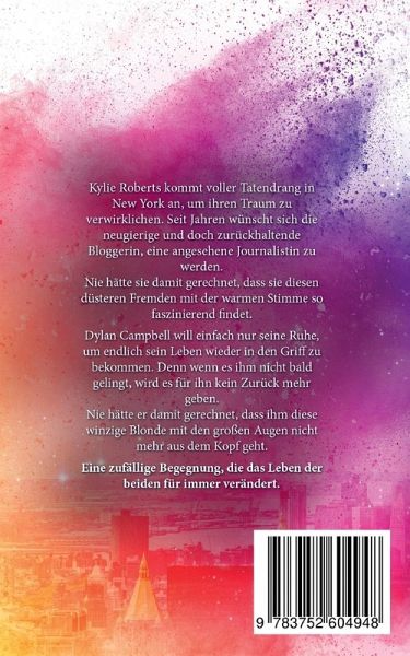 New Adult Fans aufgepasst, die Geschichte von Kylie und Dylan zieht euch mit schrägem Humor, einem Hauch Gefahr und großen Gefühlen in den Bann.Kylie Roberts kommt voller Tatendrang in New York an, um ihren Traum zu verwirklichen. Seit Jahren wünscht sich die neugierige und doch zurückhaltende Bloggerin, eine angesehene Journalistin zu werden.Nie hätte sie damit gerechnet, dass sie diesen düsteren Fremden mit der warmen Stimme so faszinierend findet.Dylan Campbell will einfach nur seine Ruhe, um endlich sein Leben wieder in den Griff zu bekommen. Denn wenn es ihm nicht bald gelingt, wird es für ihn kein Zurück mehr geben.Nie hätte er damit gerechnet, dass ihm diese winzige Blonde mit den großen Augen nicht mehr aus dem Kopf geht.Eine zufällige Begegnung, die das Leben der beiden für immer verändert.