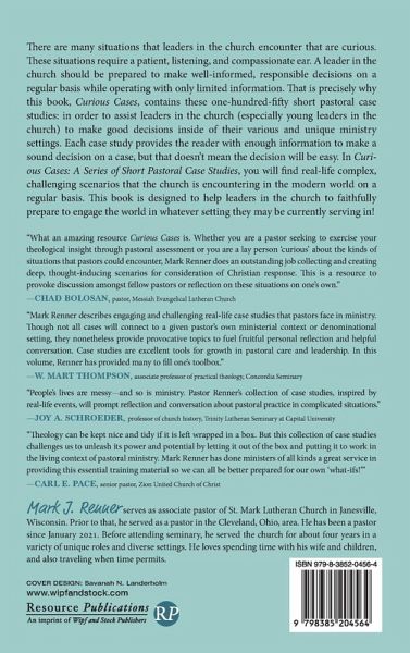 There are many situations that leaders in the church encounter that are curious. These situations require a patient, listening, and compassionate ear. A leader in the church should be prepared to make well-informed, responsible decisions on a regular basis while operating with only limited information. That is precisely why this book, Curious Cases, contains these one-hundred-fifty short pastoral case studies: in order to assist leaders in the church (especially young leaders in the church) to make good decisions inside of their various and unique ministry settings. Each case study provides the reader with enough information to make a sound decision on a case, but that doesn't mean the decision will be easy. In Curious Cases: A Series of Short Pastoral Case Studies, you will find real-life complex, challenging scenarios that the church is encountering in the modern world on a regular basis. This book is designed to help leaders in the church to faithfully prepare to engage the world in whatever setting they may be currently serving in!