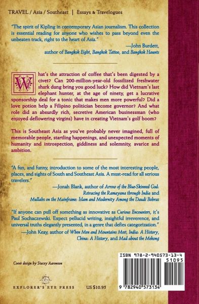 What's the attraction of coffee that's been digested by a civet? Can 200-million-year-old fossilized freshwater shark dung bring you good luck? Why do boys like to make things go bang - hey, lemme try the AK-47!? Why is the belching and slovenly widow of Laos's first president so possessive about the animal she considers her white elephant? How did Vietnam's last elephant hunter, at the age of 90, get a lucrative sponsorship deal for a tonic that makes men more powerful? Did a love potion help a Filipino politician become governor? And what role did an absurdly rich, secretive American businessman (who enjoyed deflowering virgins) have in creating Vietnam's golf boom? This is Southeast Asia as you've probably never imagined, full of memorable people, startling happenings, and unexpected moments of humanity and introspection, giddiness and solemnity, avarice and ambition.