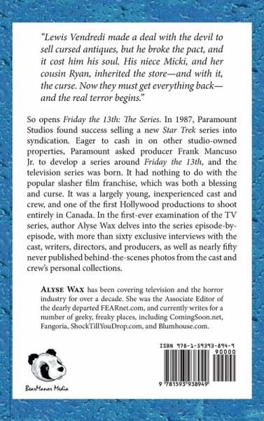 This is the HARDBACK version. "Lewis Vendredi made a deal with the devil to sell cursed antiques, but he broke the pact, and it cost him his soul. His niece Micki, and her cousin Ryan, inherited the store-and with it, the curse. Now they must get everything back-and the real terror begins." So opens Friday the 13th: The Series. In 1987, Paramount Studios found success selling a new Star Trek series into syndication. Eager to cash in on other studio-owned properties, Paramount asked producer Frank Mancuso Jr. to develop a series around Friday the 13th, and the television series was born. It had nothing to do with the popular slasher film franchise, which was both a blessing and curse. It was a largely young, inexperienced cast and crew, and one of the first Hollywood productions to shoot entirely in Canada. In the first-ever examination of the TV series, author Alyse Wax delves into the series episode-by-episode, with more than sixty exclusive interviews with the cast, writers, directors, and producers, as well as nearly fifty never published behind-the-scenes photos from the cast and crew's personal collections. ALYSE WAX has been covering television and the horror industry for over a decade. She was the Associate Editor of the dearly departed FEARnet.com, and currently writes for a number of geeky, freaky places, including ComingSoon.net, Fangoria, ShockTillYouDrop.com, and Blumhouse.com.