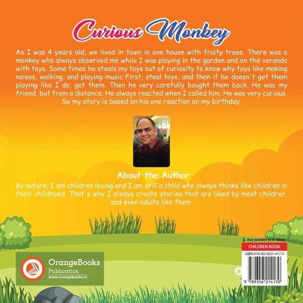 When I was 4 years old, we lived in town in a house with fruity trees. There was a monkey who always observed me while playing in the garden and on the veranda with toys. Sometimes, he steals my toys out of curiosity to know why toys making noises, walking, and playing music. First, steal toys, and then, if he doesn't get them playing like I do, get them. Then he very carefully brought them back. He was my friend, but from a distance. He always reacted when I called him. He was very curious. So, my story is based on his reaction to my birthday.