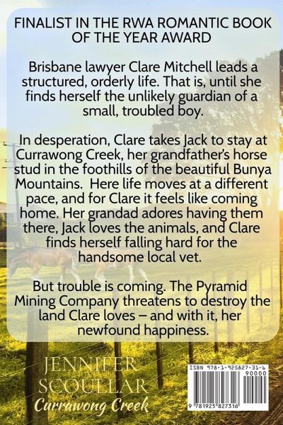 From the best-selling author of Brumby's Run, comes a heart-warming story of hope, sacrifice and the ultimate triumph of love. Finalist in the RWA Romantic Book Of The Year Award. Brisbane lawyer Clare Mitchell leads a structured, orderly life. That is, until she finds herself the unlikely guardian of a small, troubled boy. In desperation, Clare takes Jack to stay at Currawong Creek, her grandfather's horse stud in the foothills of the beautiful Bunya Mountains.Here life moves at a different pace, and for Clare it feels like coming home. Her granddad adores having them there, Jack loves the animals, and Clare finds herself falling hard for the handsome local vet.But trouble is coming. The Pyramid Mining Company threatens to destroy the land Clare loves - and with it, her newfound happiness.- Praise For Currawong Creek - 'Heartfelt and passionate.' SN Weekly'A thought provoking, emotive read with a delightful warmth. I'm now going to hunt down everything this talented Australian author has ever written.' The Eclectic Reader'A crisp, well-written tale ... sings like a Bunya Mountain breeze.' Courier-Mail