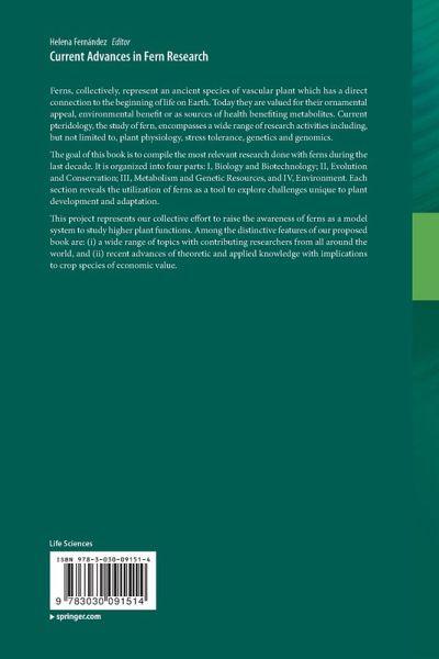 The goal of this book is to compile the most relevant research done with ferns during the last decade. It is organized into four parts: I, Biology and Biotechnology; II, Evolution and Conservation; III, Metabolism and Genetic Resources, and IV, Environment. Each section reveals the utilization of ferns as a tool to explore challenges unique to plant development and adaptation.
