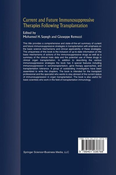 This title provides a comprehensive and state-of-the-art summary of current and future immunosuppressive strategies in transplantation, with emphasis on the basic science mechanisms and clinical applicability of these strategies. The uniqueness of this book is the inclusion of up-to-date information on the basic mechanisms of actions of the immunosuppressive drugs as well as a summary of the clinical trials data and the potential use of these drugs in clinical organ transplantation. In addition to describing the various immunosuppressive strategies, the book has three special features, including immunosuppression in xenotransplantation, gene therapy approaches, and transplantation tolerance. A group of outstanding investigators have been assembled to write the chapters. The book is intended for the transplant professional and the specialist who wants to stay abreast of the current status of immunosuppression in organ transplantation. The book is also useful for basic scientists who work in the field of transplantation immunology.