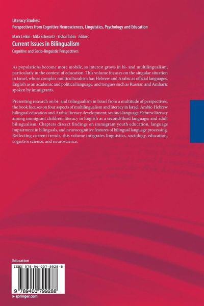 As populations become more mobile, so interest grows in bi- and multilingualism, particularly in the context of education. This volume focuses on the singular situation in Israel, whose complex multiculturalism has Hebrew and Arabic as official languages, English as an academic and political language, and tongues such as Russian and Amharic spoken by immigrants.