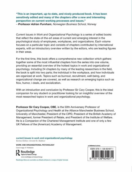 For the first time, this book offers a comprehensive new collection which gathers together some of the most influential chapters from the series into one volume, providing an essential overview of the hottest topics in work and organizational psychology. Including 24 chapters by many of the leading researchers in the field, the book is split into two parts; the individual in the workplace, and how individuals are organized at work. Topics such as burnout, recruitment, well-being and organizational change are covered, as well as research on emerging topics such as flow, humor, i-deals, and socialization.
