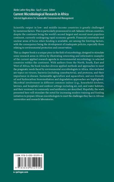Scientific output in low- and middle-income countries is greatly challenged by numerous factors. This is particularly pronounced in sub-Saharan African countries, despite the continent being the world's second largest and second most-populous continent, currently undergoing rapid economic growth. Financial constraints and unclear areas of focus when funding is available, are among the limiting factors, with the consequence being the development of inadequate policies, especially those relating to environmental protection and conservation. This 13-chapter book is a unique piece in the field of microbiology, designed to stimulate some research areas in Africa by illustrating interesting and informative examples of the current applied research agenda in environmental microbiology in selected countries within the continent. With authors from the North, South, East and West of Africa, the book touches diverse applied methods and approaches to meet the pragmatic needs faced by environmental microbiologists in Africa. Also included are topics on viruses, bacteria (including cyanobacteria), and protozoa, and their importance in disease. Sustainable agriculture and aquaculture, and eco-friendly oil and hydrocarbon bioremediation and degradation approaches are highlighted. Microbial involvement in different common indoor (e.g., household kitchens, latrines, and hospitals) and outdoor settings including air, soil, and water habitats, and their resistance to commonly used antibiotics, are described. Hopefully, the work presented here will stimulate the need for increasing modern training and funding initiatives to prepare African microbiologists to meet the challenges they face in African universities and research laboratories.