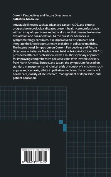 Intractable illnesses such as advanced cancer, AIDS, and chronic progressive neurological diseases present health-care professionals with an array of symptoms and ethical issues that demand extensive exploration and consideration. As the quest for advances in symptomatology continues, it is imperative to disseminate and integrate the knowledge currently available in palliative medicine. The International Symposium on Current Perspectives and Future Directions in Palliative Medicine was held in Tokyo in October 1997 to provide health-care professionals with a multidisciplinary approach for…mehr