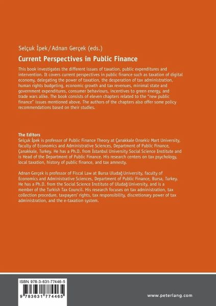 This book investigates the different issues of taxation, public expenditures and intervention. It covers current perspectives in public finance such as taxation of digital economy, delegating the power of taxation, the desperation of tax administration, human rights budgeting, economic growth and tax revenues, minimal state and government expenditures, consumer behaviours, incentives to green energy, and trade wars alike. The book consists of eleven chapters related to the «new public finance» issues mentioned above. The authors of the chapters also offer some policy recommendations based on their studies.