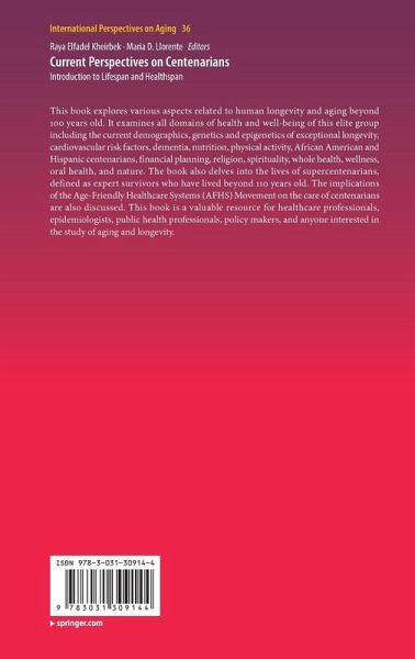 This book explores various aspects related to human longevity and aging beyond 100 years old. It examines all domains of health and well-being of this elite group including the current demographics, genetics and epigenetics of exceptional longevity, cardiovascular risk factors, dementia, nutrition, physical activity, African American and Hispanic centenarians, financial planning, religion, spirituality, whole health, wellness, oral health, and nature. The book also delves into the lives of supercentenarians, defined as expert survivors who have lived beyond 110 years old. The implications of the Age-Friendly Healthcare Systems (AFHS) Movement on the care of centenarians are also discussed. This book is a valuable resource for healthcare professionals, epidemiologists, public health professionals, policy makers, and anyone interested in the study of aging and longevity.