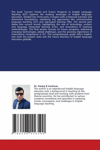 The book 'Current Trends and Future Prospects in English Language Teaching (ELT)' explores the evolving landscape of English language education. Divided into three parts, it begins with a historical overview and theoretical foundations, examining key approaches like communicative language teaching (CLT) and task-based learning (TBL). The second part delves into current trends, highlighting the role of technology, content and language integrated learning (CLIL), and innovations in teaching methodologies. The final section focuses on future prospects, addressing emerging technologies, global challenges, and the growing importance of intercultural competence in ELT. This comprehensive guide offers insights into both the present state and the future direction of English language education globally.