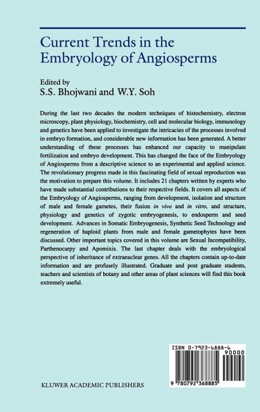 During the last two decades the modern techniques of histochemistry, electron microscopy, plant physiology, biochemistry, cell and molecular biology, immunology, and genetics have been applied to investigate the intricacies of the processes involved in embryo formation, and considerable new information has been generated. A better understanding of these processes has enhanced our capacity to manipulate fertilization and embryo development. This has changed the face of the embryology of angiosperms from a descriptive science to an experimental and applied science. The revolutionary progress made in this fascinating field of sexual reproduction was the motivation to prepare this volume. It includes 21 chapters written by experts who have made substantial contributions to their respective fields. It covers all aspects of the embryology of angiosperms, ranging from development, isolation, and structure of male and female gametes, their fusion in vivo and in vitro, and structure, physiology, and genetics of zygotic embryogenesis, to endosperm and seed development. Advances in somatic embryogenesis, synthetic seed technology and regeneration of haploid plants from male and female gametophytes are discussed. Other important topics covered in this volume are sexual incompatibility, parthenocarpy, and apomixis. The last chapter deals with the embryological perspective of inheritance of extra-nuclear genes. All the chapters contain up-to-date information and are profusely illustrated. Graduate and postgraduate students, teachers, and scientists of botany and other areas of plant sciences will find this book extremely useful.