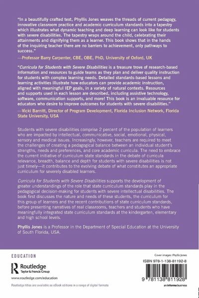 Students with severe disabilities comprise 2 percent of the population of learners who are impacted by intellectual, communicative, social, emotional, physical, sensory and medical issues. Increasingly, however, teachers are required to meet the challenges of creating a pedagogical balance between an individual student's strengths, needs and preferences, and core academic curricula. The need to embrace the current initiative of curriculum state standards in the debate of curricula relevance, breadth, balance and depth for students with severe disabilities is not just timely-it contributes to the evolving debate of what constitutes an appropriate curriculum for severely disabled learners. Curricula for Students with Severe Disabilities supports the development of greater understandings of the role that state curriculum standards play in the pedagogical decision-making for students with severe intellectual disabilities. The book first discusses the nature and needs of these students, the curriculum for this group of learners and the recent contributions of state curriculum standards, before presenting narratives of real classrooms, teachers and students who have meaningfully integrated state curriculum standards at the kindergarten, elementary and high school levels.