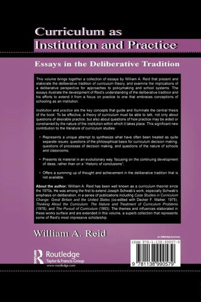 This volume brings together a collection of essays by William A. Reid that present and elaborate the deliberative tradition of curriculum theory, and examine the implications of a deliberative perspective for approaches to policy making and school systems. The essays illustrate the development of Reid's understanding of the deliberative tradition and his efforts to extend it from a focus on practice to one that embraces conceptions of schooling as an institution. Institution and practice are the key concepts which guide and illuminate the central thesis of the book: To be effective, a theory of curriculum must be able to talk not only about questions of desirable practice, but also about questions of how practice may be aided or constrained by the nature of the institution within which it takes place. This significant new contribution to the literature of curriculum studies: *represents a unique attempt to synthesize what have often been treated as quite separate issues: questions of the philosophical basis for curriculum decision making, questions of processes of decision making, and questions of the nature of schools and classrooms; *presents its material in an evolutionary way, focusing on the continuing development of ideas, rather than on a "rhetoric of conclusions"; and *offers a summing up of thought and achievement in the deliberative tradition that is not otherwise available.