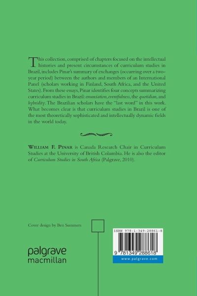 This collection, comprised of chapters focused on the intellectual histories and present circumstances of curriculum studies in Brazil, is Pinar's summary of exchanges (occurring over a two-year period) between the authors and members of an International Panel (scholars working in Finland, South Africa, the United States).