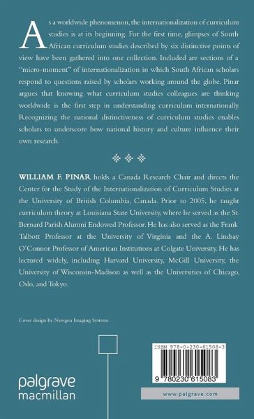 WILLIAM F. PINAR holds a Canada Research Chair and directs the Centre for the Study of the Internationalization of Curriculum Studies at the University of British Columbia, Canada.