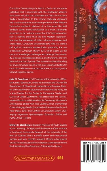 Contents: William M. Reynolds: Preface: Against Canonphobia. Curriculum as Political - Acknowledgments - The Curriculum Field - João M. Paraskeva: Opening up Curriculum Canon to Democratize Democracy - Herbert M. Kliebard: Dewey and the Herbartians: The Genesis of a Theory of Curriculum - Barry M. Franklin: The Discursive Roots of Community: A Genealogy of the Curriculum - William Watkins: A Marxian and Radical Reconstructionist Critique of American Education: Searching Out Black Voices - William G. Wraga: Arresting the Decline of Integrity of Curriculum Studies in the United States: The Policy of Opportunity - James C. Jupp: Undoing Double Binds in Curriculum: On Cosmopolitan Sensibilities in U.S. Curriculum Studies - José Félix Angulo Rasco: In Search of the Lost Curriculum - The Political and the Power of the Personal - Henry A. Giroux: Dialectics and the Development of Curriculum Theory - William Pinar: Autobiography and an Architecture of Self - Bernadette Baker: Subject Matters? Curriculum History, the Legitimation of Scientific Objects, and the Analysis of the Invisible - Tero Autio: Curriculum Theory, Education Policy, and «The Recurring Question of the Subject» - Alice Casimiro Lopes and Elizabeth Macedo: Poststructuralism in Curriculum Policies in Brazil - Curriculum Inquiry: Re-Thinking/De-Canon the Canon - João M. Paraskeva: Epistemicides: Toward an Itinerant Curriculum Theory - George J. Sefa Dei: Revisiting the Question of the «Indigenous» - Vanessa de Oliveira Andeotti: Renegotiating Epistemic Privilege and Enchantments with Modernity: The Gain in the Loss of the Entitlement to Control and Define Everything - Dennis Carlson: Curriculum Inheritance: The Field, the Canon, and the Crisis of the Postmodern University - Susan Jean Mayer: Canons as Neocolonial Projects of Understanding - The Dynamics of Ideological Production - Patti Lather: Ideology and Methodological Attitude - Ana Sánchez-Bello: The Voices of Women in Curriculum Tensions - LaGarrett J. King, Crystal Simmons, and Anthony L. Brown: Revisionist Ontology and the Historical Trajectory of Black Curriculum - Cameron McCarthy: The New Terms of Race in Light of Neoliberalism and the Transforming Contexts of Education and the City in the Era of Globalization - Shirley R. Steinberg: Early Education as a Gendered Construction - Soraya Isabel de Barros: The Cape Verdean Language and Identity Question: Pride, Politics of Negation, or Willful Ignorance? - Elizabeth Janson: Globalization: The Lodestone Rock to Curriculum - Curriculum (Counter)Discourses - Giovanna Campani: Intercultural Curriculum in Neonationalist Europe: Between Neonationalism and Austerity - Jurjo Torres Santomé: The Intercultural Curriculum: Networks and Global Communities for Collaborative Learning - Shervani K. Pillay: Curriculum as Discourse: From Africa to South Africa and Back - José R. Rosario: Curriculum, Nuyorican Memoirs, and the Improvisation of Identity: From What to Make of «Them» to How «Them» Might Make Themselves - João Rosa: Under the Gaze of Neoliberal Epistemology: Dislocating the National Curriculum and Re-Engineering the Citizen - Silvia Redon: Voices of the Curriculum to the South of Latin America: The Subject, the History, and the Politics - Teacher Education, Narratives, and Social Justice - Joe L. Kincheloe: The Curriculum and the Classroom - Silvia Edling: «Who» Is Teacher Education? Approaching the Negative Stereotypes of Teacher Education - Anneli Frelin: Curriculum, Didaktik, and Professional Teaching: Conceptual Contributions from the Intersections of Curriculum Studies in an Age of «Crisis» in Education - Maria Alfredo Moreira: