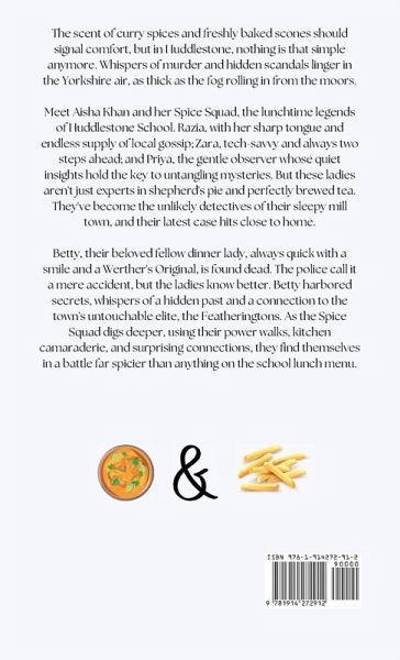 The scent of curry spices and freshly baked scones should signal comfort, but in Huddlestone, nothing is that simple anymore. Whispers of murder and hidden scandals linger in the Yorkshire air, as thick as the fog rolling in from the moors. Meet Aisha Khan and her Spice Squad, the lunchtime legends of Huddlestone School. Razia, with her sharp tongue and endless supply of local gossip; Zara, tech-savvy and always two steps ahead; and Priya, the gentle observer whose quiet insights hold the key to untangling mysteries. But these ladies aren't just experts in shepherd's pie and perfectly brewed tea. They've become the unlikely detectives of their sleepy mill town, and their latest case hits close to home. Betty, their beloved fellow dinner lady, always quick with a smile and a Werther's Original, is found dead. The police call it a mere accident, but the ladies know better. Betty harbored secrets, whispers of a hidden past and a connection to the town's untouchable elite, the Featheringtons. As the Spice Squad digs deeper, using their power walks, kitchen camaraderie, and surprising connections, they find themselves in a battle far spicier than anything on the school lunch menu. From the shadowy corners of the old mill to the grand halls of Featherington Manor, they follow a trail of missing lottery tickets, scandalous affairs, and long-buried resentments. They navigate a tangled web of feuding families, forgotten secrets, and simmering tensions that threaten to tear Huddlestone apart at the seams. But don't underestimate the ladies who lunch. Fueled by friendship, a fierce sense of justice, and a side of piping hot samosas, these ladies are about to bring their unique brand of spice to a town that's sadly lacking in flavor. Because if there's one thing the Spice Squad knows, it's that even in the coziest corners of England, a little murder can leave the worst aftertaste.