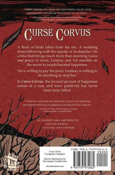 A flock of birds fallen from the sky. A wedding dress, billowing with the specter of its deserter. On a hike that brings much more than stunning views and peace of mind, Lindsay and Val stumble on the secret to unadulterated happiness. Val is willing to pay the price. Lindsay is willing to do anything to stop her. In Curse Corvus, the fevered pursuit of happiness comes at a cost, and toxic positivity has never been more lethal.