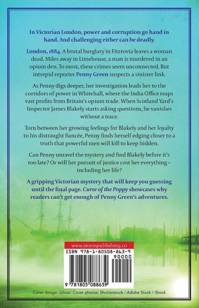 In Victorian London, power and corruption go hand in hand. And challenging either can be deadly. London, 1884. A brutal burglary in Fitzrovia leaves a woman dead. Miles away in Limehouse, a man is murdered in an opium den. To most, these crimes seem unconnected. But intrepid reporter Penny Green suspects a sinister link. As Penny digs deeper, her investigation leads her to the corridors of power in Whitehall, where the India Office reaps vast profits from Britain's opium trade. When Scotland Yard's Inspector James Blakely starts asking questions, he vanishes without a trace. Torn between her growing feelings for Blakely and her loyalty to his distraught fiancée, Penny finds herself edging closer to a truth that powerful men will kill to keep hidden. Can Penny unravel the mystery and find Blakely before it's too late? Or will her pursuit of justice cost her everything - including her life? A gripping Victorian mystery that will keep you guessing until the final page. Curse of the Poppy showcases why readers can't get enough of Penny Green's adventures.