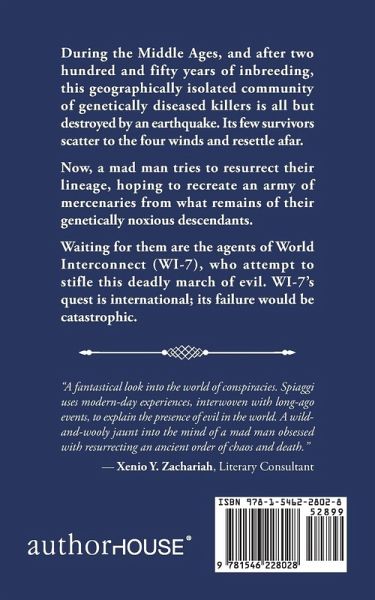 During the Middle Ages, and after two hundred and fifty years of inbreeding, this geographically isolated community of genetically diseased killers is all but destroyed by an earthquake. Its few survivors scatter to the four winds and resettle afar. Now, a mad man tries to resurrect their lineage, hoping to recreate an army of mercenaries from what remains of their genetically noxious descendants. Waiting for them are the agents of World Interconnect (WI-7), who attempt to stifle this deadly march of evil. WI-7s quest is international; its failure would be catastrophic.
