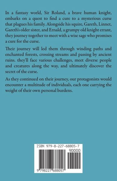 In a fantasy world, Sir Roland, a brave human knight, embarks on a quest to find a cure to a mysterious curse that plagues his family. Alongside his squire, Gareth, Linnet, Gareth's older sister, and Ernald, a grumpy old knight errant, they journey together to meet with a wise sage who promises a cure for the curse. Their journey will led them through winding paths and enchanted forests, crossing streams and passing by ancient ruins. they'll face various challenges, meet diverse people and creatures along the way, and ultimately discover the secret of the curse. As they continued on their journey, our protagonists would encounter a multitude of individuals, each one carrying the weight of their own personal burdens.